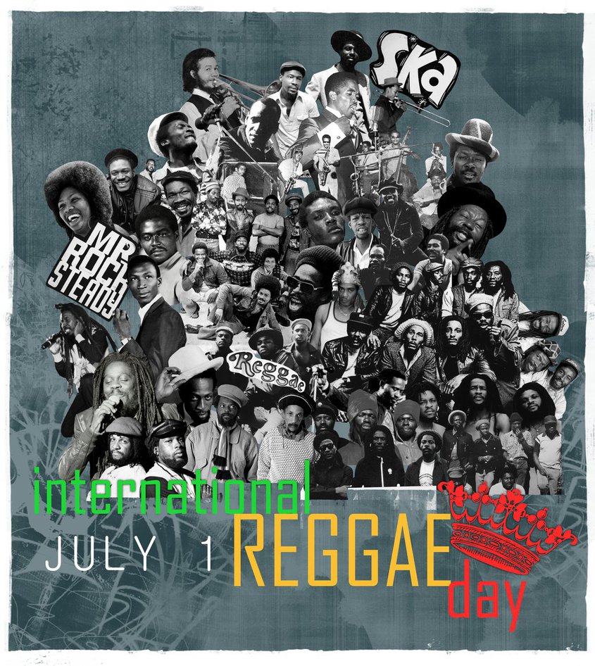 DIA INTERNACIONAL DO REGGAE-Dia Internacional Reggae, (IRD – International Reggae Day) foi inspirado por Winnie Mandela durante sua visita oficial à Jamaica em julho de 1991, com o marido Nelson Mandela logo após a sua libertação da prisão. Sra. Mandela falou do poder do Reggae através das obras de Marley, Tosh, Cliff e outros, para inspirar as pessoas da África do Sul em face do regime de Apartheid opressivo. Um dia para reconhecer o poder desta forma de arte, pareceu apropriado para Andrea Davis (organizadora do IRD), a criação de um festival para celebrar o dia internacional do reggae que foi lançado em 1 º de julho de 1994. Reggae é um gênero musical desenvolvido originalmente na Jamaica do fim da década de 1960.. No Brasil, é um ritmo predominante no estado do Maranhão. Embora por vezes seja usado num sentido mais amplo para se referir à maior parte dos tipos de música jamaicana, o termo reggae indica mais especificamente um tipo particular de música que se originou do desenvolvimento dd ska e do rocksteady. DIA INTERNACIONAL DO REGGAE, 1º DE JULHO.