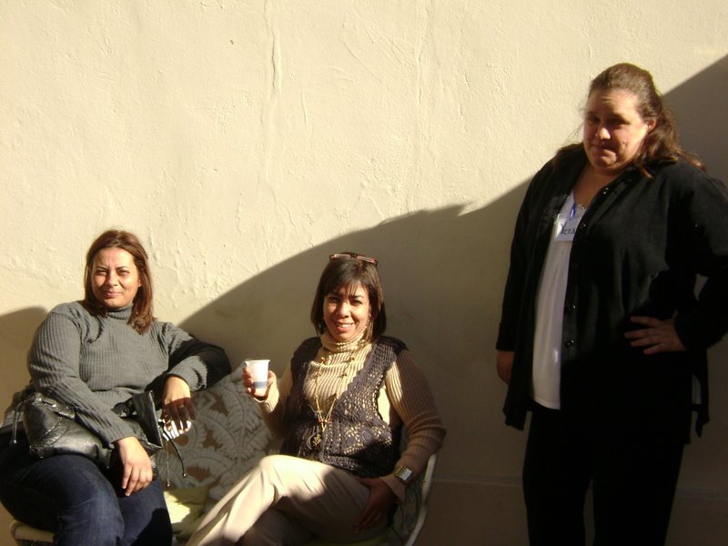 As enfermeiras Débora e Vera com preletora (centro) de curso sobre liderança pública em 2008.