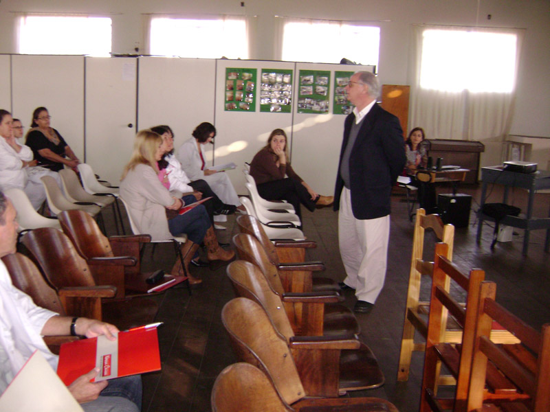 Ex-prefeito antes do início de encontro com funcionários do Fundo Social Departamento Social e Saúde, no Cran, em sua gestão 2005 2008.