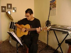 Nilton César Rodrigues ensaiando uma MPB na sua casa em 2008