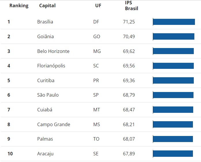 Nos quadro que segue, as 10 melhores capitais do país no ranking