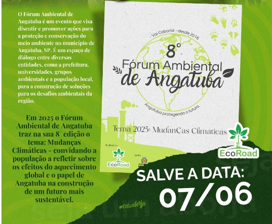 Vivemos uma época em que no mundo todo está se realizando os fóruns ambientais, mobilizações que desempenham um papel fundamental na promoção do diálogo, na formulação de políticas e na conscientização sobre as questões relacionadas ao meio ambiente. Esses encontros podem reunir representantes de governos, organizações não governamentais, setor privado, cientistas e a sociedade civil, criando um espaço democrático e participativo para discutir soluções sustentáveis frente aos desafios ambientais globais e locais. Em Angatuba, não tem sido diferente, a preocupação com o meio ambiente também existe e não é de hoje, neste sábado, 7 de junho, por exemplo, será realizado o 8º Fórum Ambiental de Angatuba, evento promovido pelo grupo Eco Road, com o apoio da prefeitura. Com início às 9 horas, o fórum será realizado na escola Ivens Vieira. Quem quiser participar deve se inscrever através deste link:https://forms.gle/cFYdESVHfg5MvqQ1A.