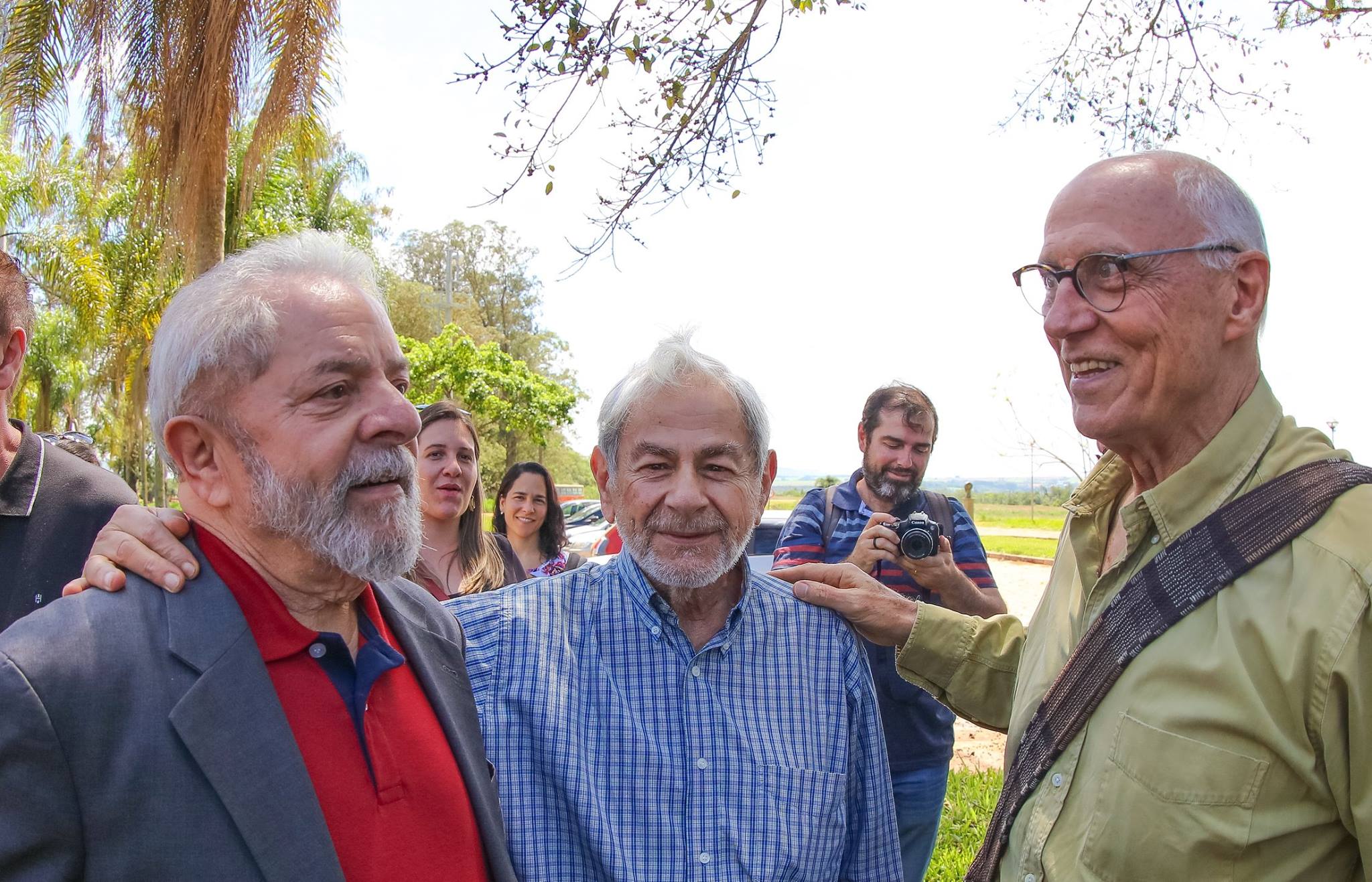 Lula, com o escritor Raduan Nassar e Eduardo Suplicy, em sua visita anterior ao campus Lagoa do Sino,
